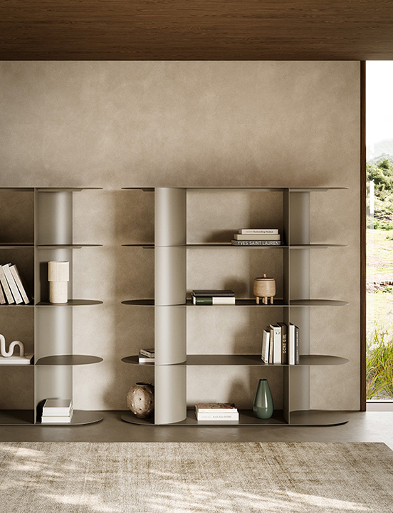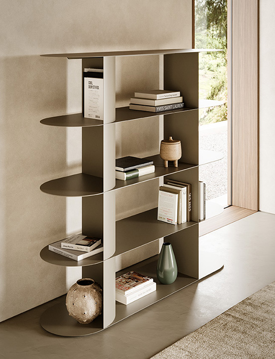 Zephir è una libreria in metallo caratterizzata da linee estremamente contemporanee. I sottili profili in metallo curvato donano leggerezza e personalità a questa libreria, che si presta a completare qualsiasi ambiente grazie anche alle numerose finiture disponibili.